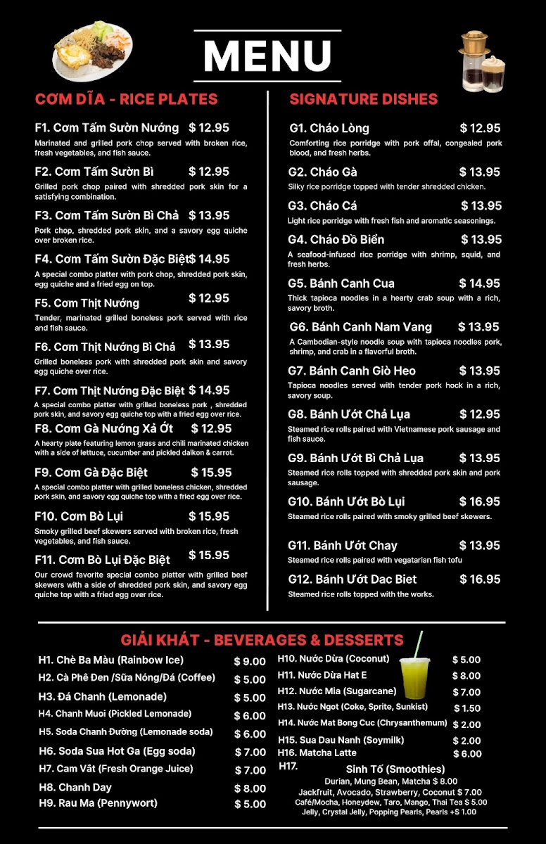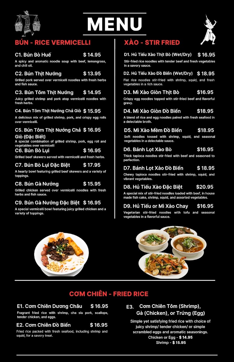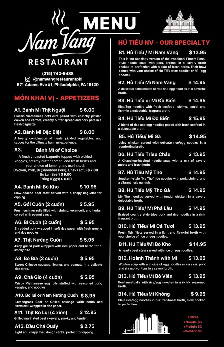 The menu at Nam Vang Restaurant offers a relaxed, casual dining experience centered around authentic Vietnamese and Cambodian flavors. It’s a place where simple, comforting dishes come together with fresh ingredients and traditional preparations, creating meals that feel both familiar and satisfying.